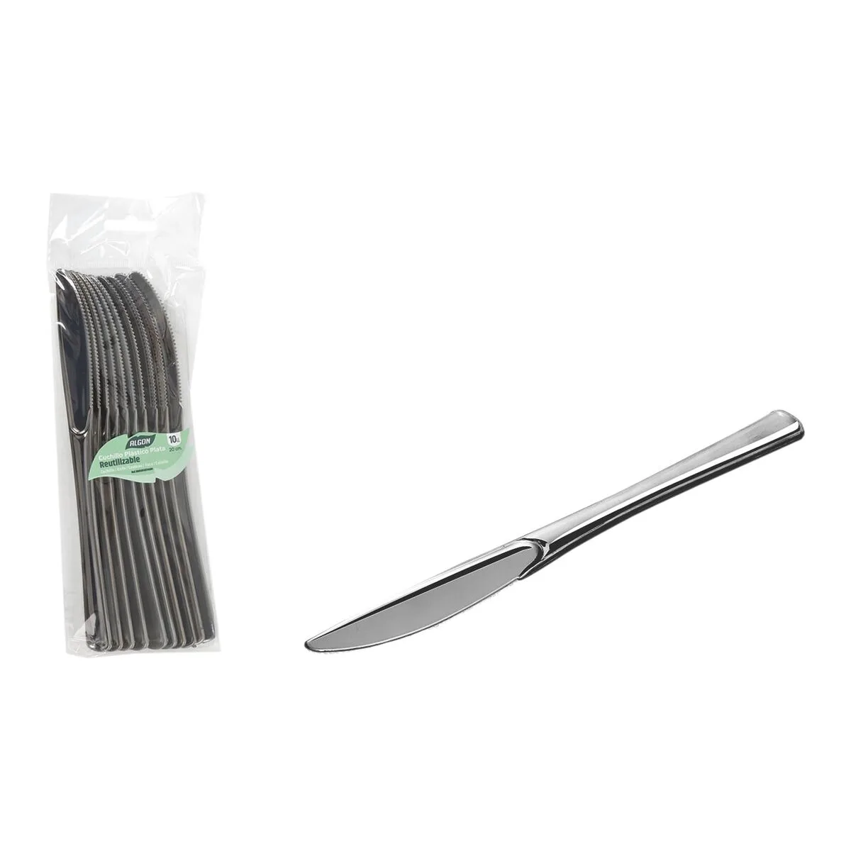 SET DE CUCHILLOS REUTILIZABLES ALGON PLATEADO PLÁSTICO 20 CM 10 PIEZAS (24 UNIDADES)... Enviado a toda España y a Madrid, Barcelona, Valencia, Sevilla, Zaragoza, Málaga, Murcia, Palma de Mallorca, Las Palmas y Bilbao ...