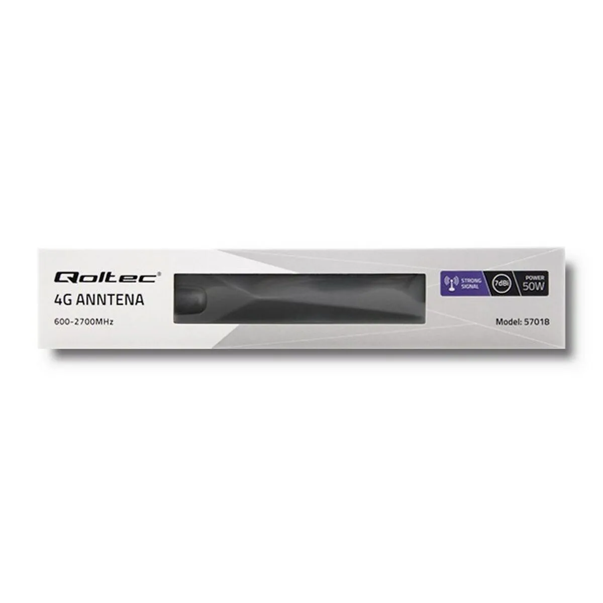 Qoltec 57018. Ganancia de la antena (max): 7 dBi, Frecuencia de banda: 0.6 – 27 GHz, Obstrucción: 50 Ω. Tipo de antena: Antena direccional, Tipo de conector de antena: Clase N, Género del conector: Macho. Consumo de energía (max): 50 W. Altura: 195 mm, Peso: 31 g, Ancho del paquete: 210 mm. Cantidad por paquete: 1 pieza(s)