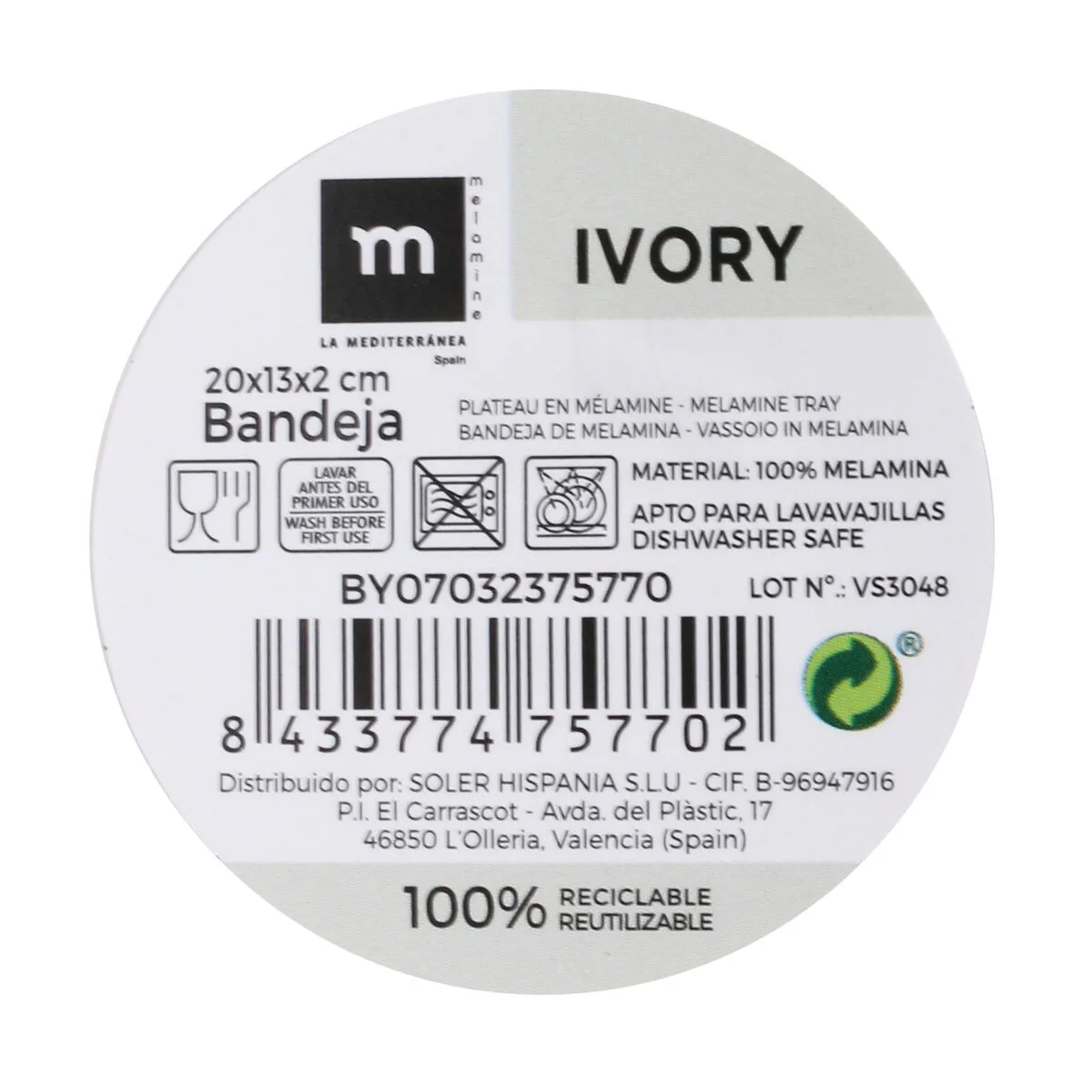 BANDEJA DE APERITIVOS LA MEDITERRÁNEA MELAMINA BLANCO BRILLO 20 X 13 X 2 CM (24 UNIDADES)… Enviado a toda España y a Madrid, Barcelona, Valencia, Sevilla, Zaragoza, Málaga, Murcia, Palma de Mallorca, Las Palmas y Bilbao …