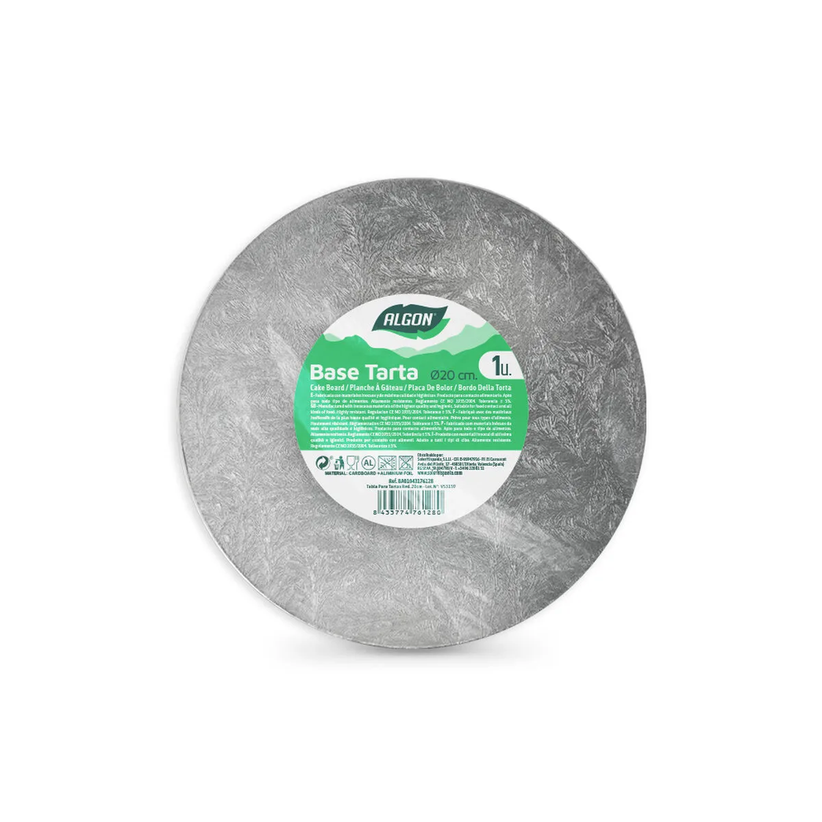 13 valoraciones en BASE PARA PASTEL ALGON PLATEADO 20 X 20 X 1,5 CM CUADRADO (24 UNIDADES)