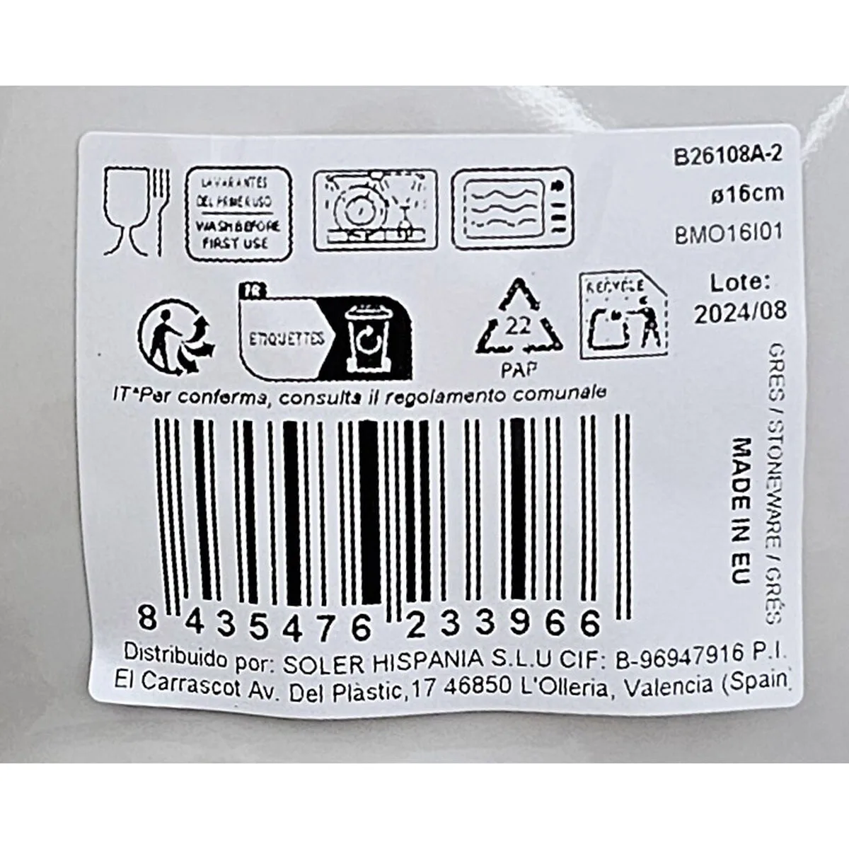 • Tipo: Vajilla