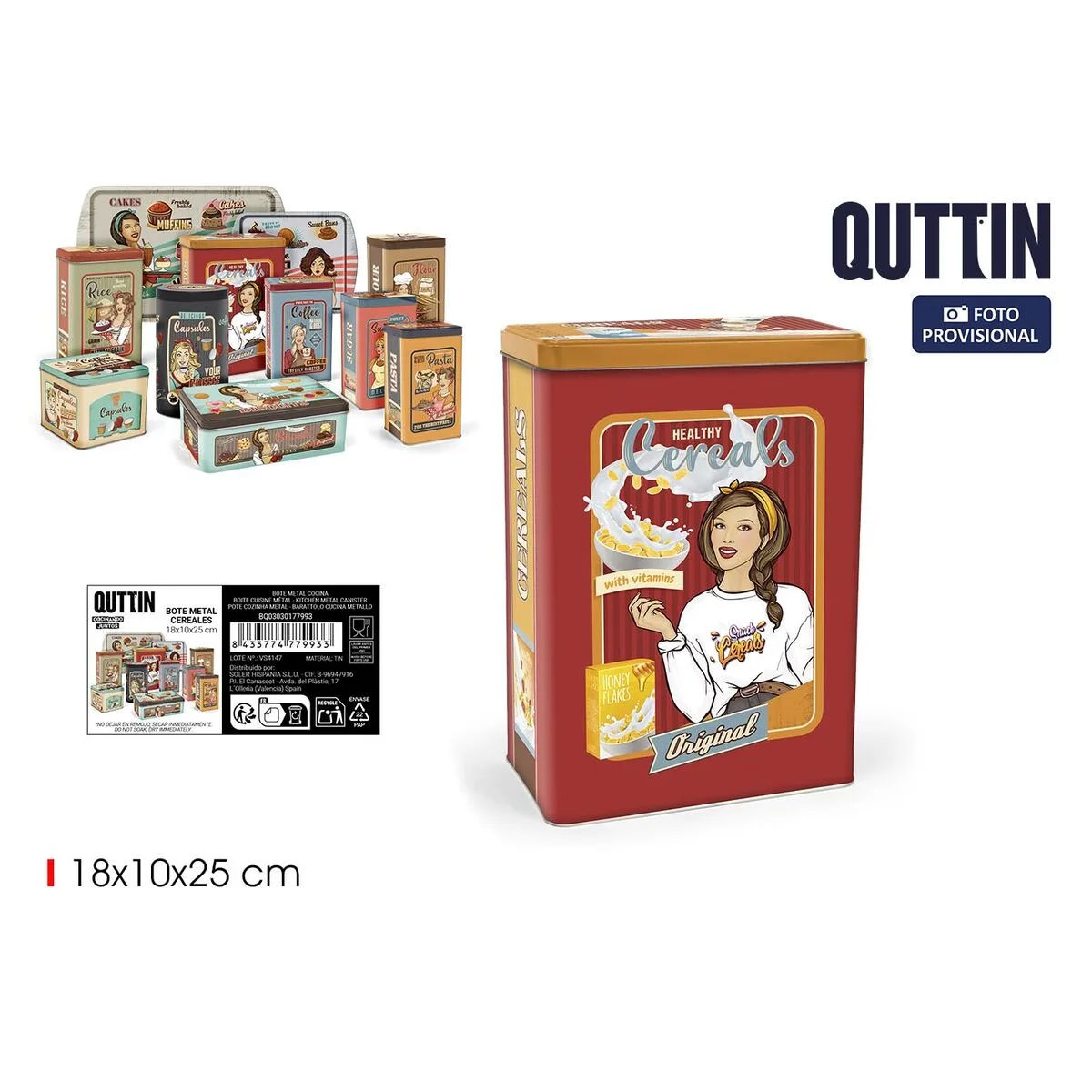 Si te gusta cuidar cada detalle de tu hogar y estar a la última en productos que te harán la vida más facil, compra Bote Metálico Quttin CEREALS (12 Unidades) al mejor precio.