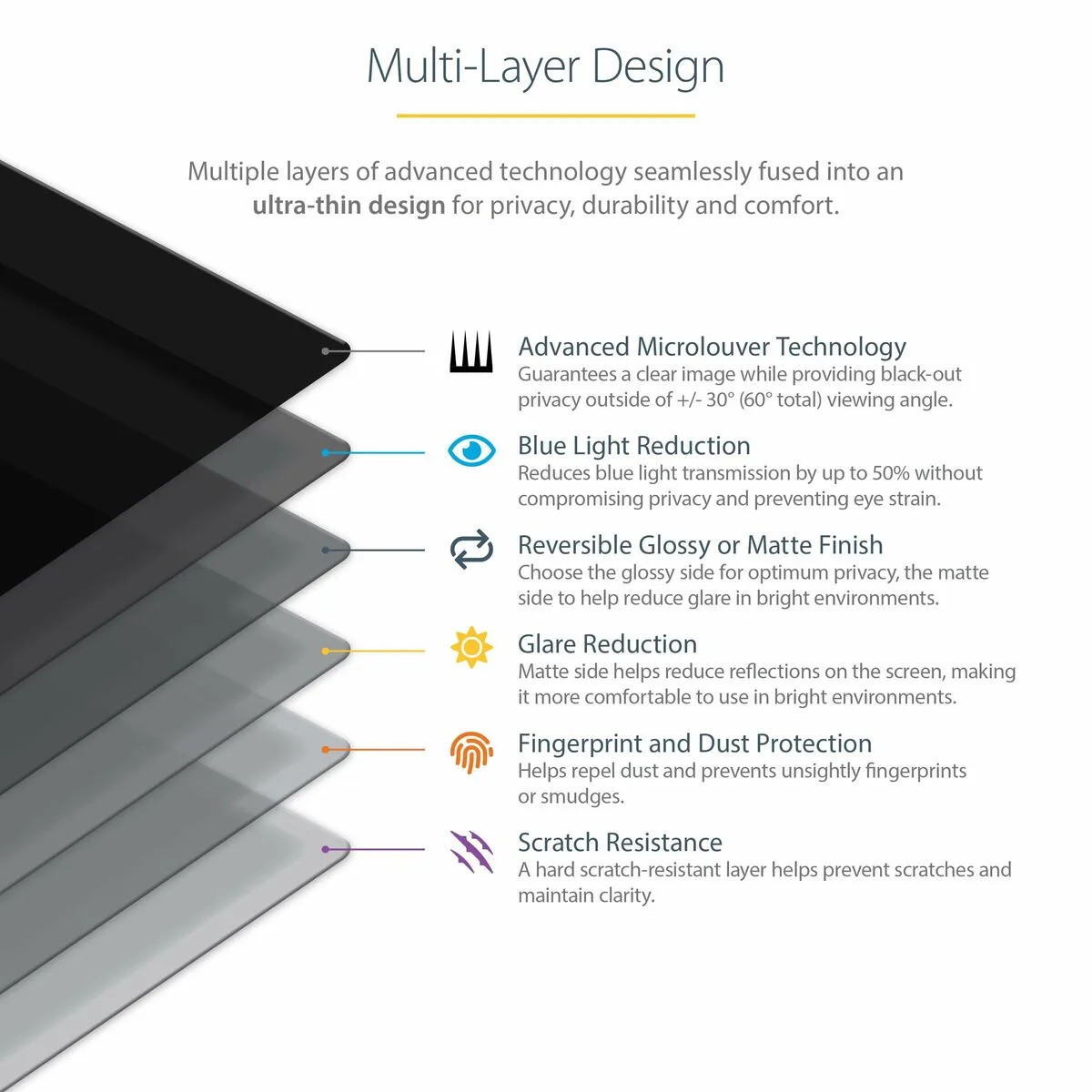 - Filtros de privacidad de pantalla: Antideslumbrante, Privacidad