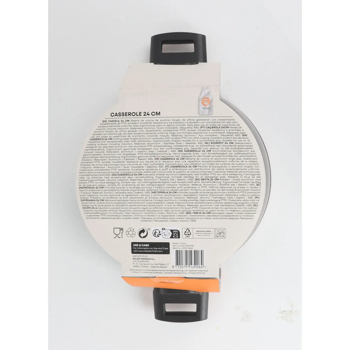 La cacerola con tapa MasterChef es un utensilio de cocina diseñado para un uso versátil y eficiente. Fabricada en vidrio de alta calidad, esta cacerola permite una visualización clara del proceso de cocción, facilitando el control de los alimentos sin necesidad de destapar, lo que contribuye a conservar mejor el calor y los sabores. Su diámetro aproximado de 24 cm la hace ideal para preparar raciones medianas, adecuada tanto para estofados, guisos como para calentar líquidos o cocinar al vapor. La base de esta cacerola cuenta con un espesor de 2,5 mm, lo que asegura una distribución uniforme del calor y una resistencia adecuada para usos diarios en cocinas domésticas. Aunque está fabricada en China, cumple con los estándares funcionales propios de la línea MasterChef, que busca ofrecer productos prácticos y duraderos. La tapa complementa perfectamente la estructura, asegurando un cierre adecuado que retiene el vapor y permite conservar el punto de cocción deseado. Este diseño en vidrio también facilita su limpieza, al mismo tiempo que añade un toque moderno y funcional a cualquier cocina. En conjunto, esta cacerola con tapa de vidrio 24 cm combina materialidad resistente y dimensiones prácticas para quienes requieren un recipiente confiable y fácil de manejar en la cocina diaria. Un utensilio que responde a las necesidades esenciales de preparación con la calidad y sencillez propias de MasterChef.