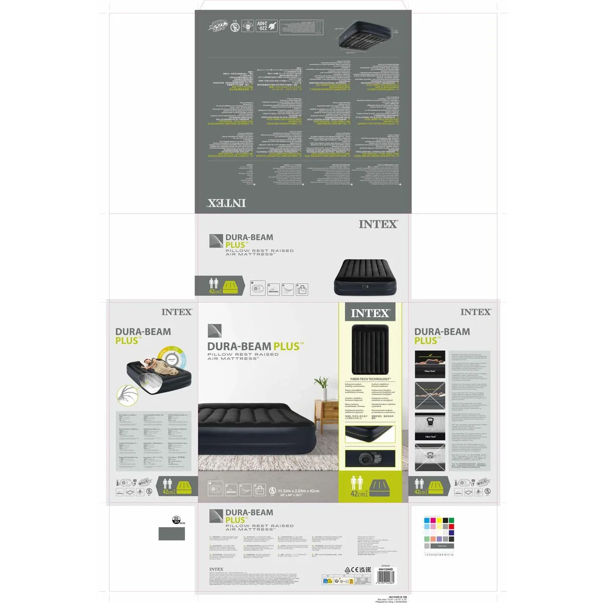 Colchón hinchable doble Pillow Rest Raised INTEX para uso interior y exterior con capacidad para 2 personas (peso máximo soportado 272 kg). Está fabricado con tecnología patentada Fiber-Tech, con estructura interior compuesta por miles de fibras de poliéster y exterior fabricado de PVC laminado para una mayor resistencia frente a perforaciones. Su superficie acanalada fabricada con material flocado de textura suave y aterciopelada combinada con la almohada integrada, proporcionan un nivel adicional de confort. El colchón cuenta con un anillo inferior hinchable para mayor estabilidad e incorpora hinchador eléctrico para un inflado y desinflado más rápido. Lo podrás tener listo en aproximadamente 3,15 minutos. Gracias a su plegado compacto y a su bolsa de almacenaje, es muy fácil de guardar y transportar.