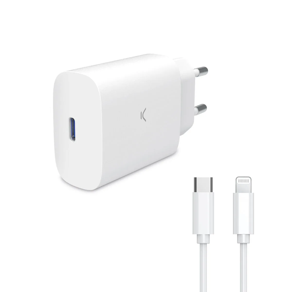 Cargador USB con entrada de 100 a 240 Voltios a 50/60 Hz de corriente alterna (AC) y una salida de corriente continua (DC) de 5 Voltios y 2,4 amperios máxima.Cable de 1m de longitud con conector C89 lightning homologado por Apple.