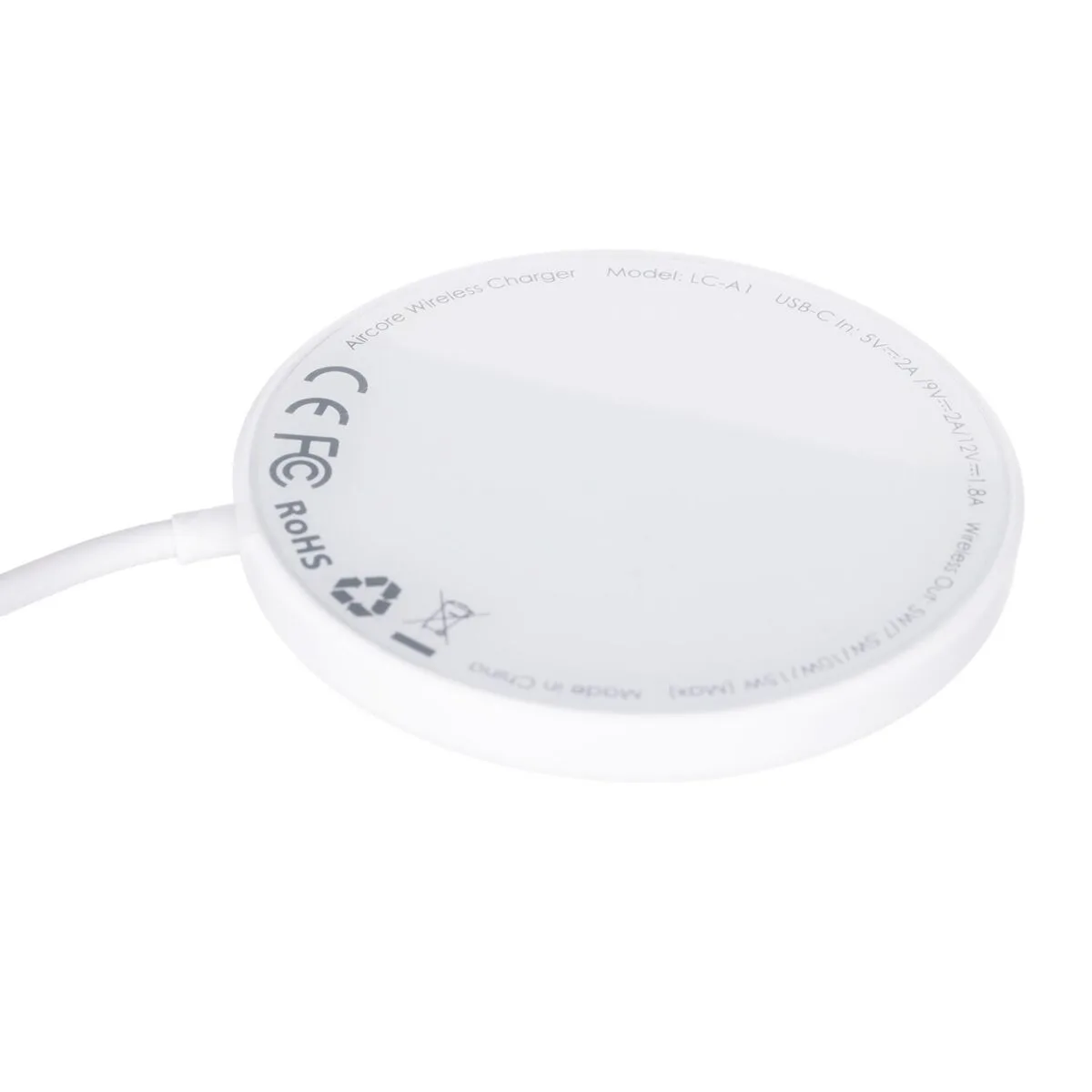 AUKEY Aircore. Tipo de cargador: Interior, Alimentación: USB, Compatibilidad del cargador: Auriculares, Smartphone, Cargador inalámbrico. Longitud de cable: 1,2 m, Color del producto: Blanco