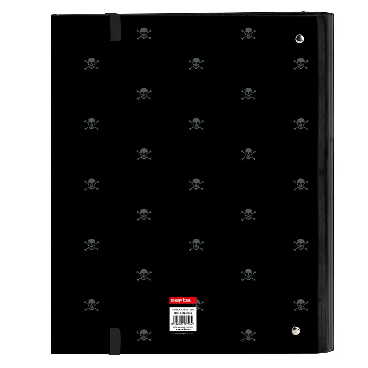 Lomo ancho de 60 mm. Tapas duras forradas. Tamaño folio. 4 anillas redondas de 40 mm.