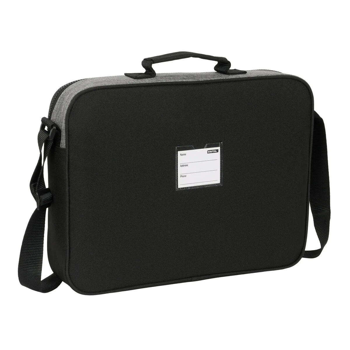 Bandolera ajustable. Asa de mano forrada en la parte superior. Doble tirador en cremallera principal para facilitar su apertura. Fondo interior semirígido extraible.