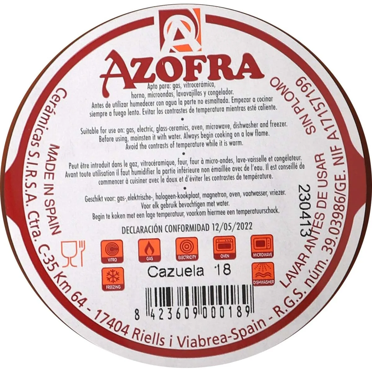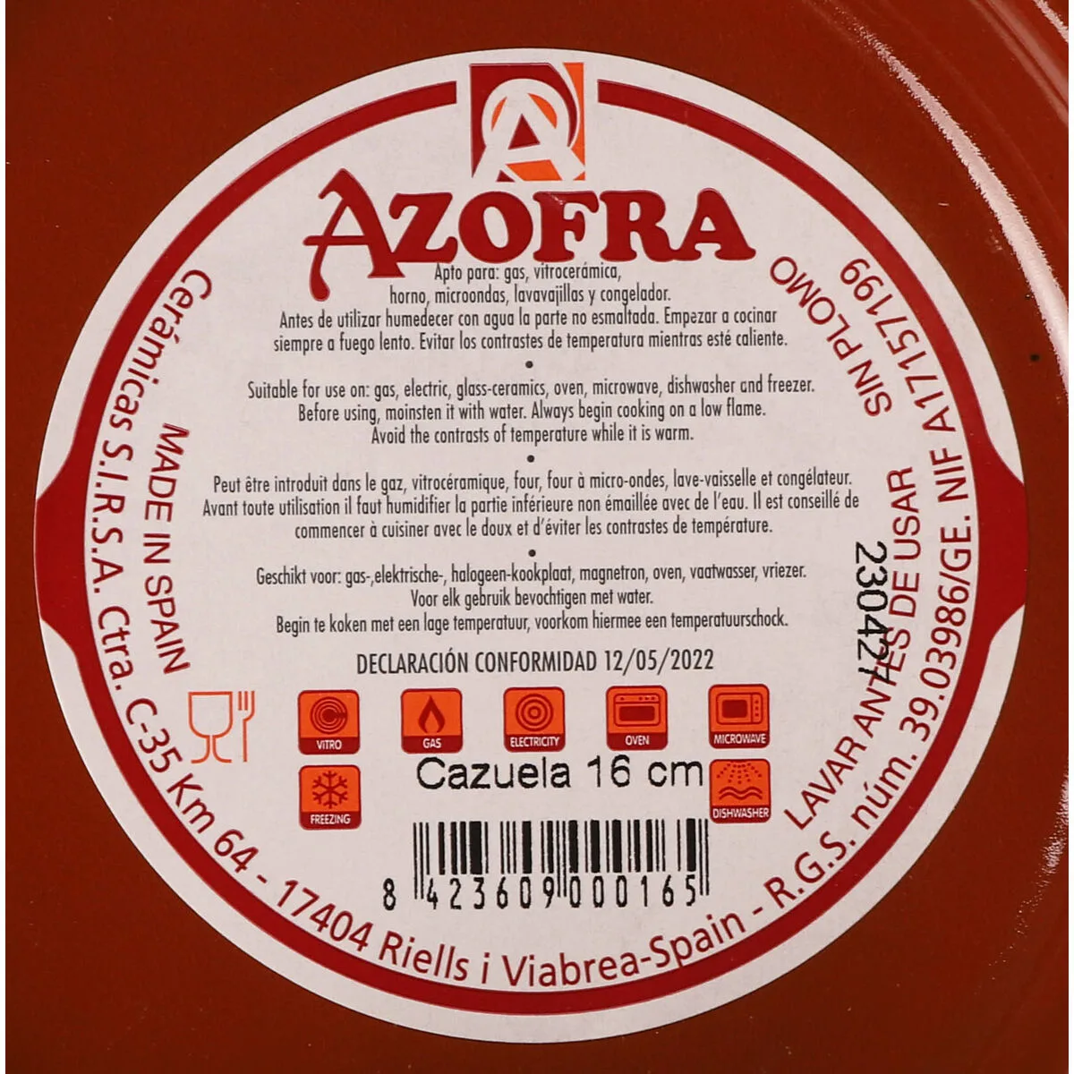 17 valoraciones en CAZUELA AZOFRA MARRÓN BARRO COCIDO (24 UNIDADES)