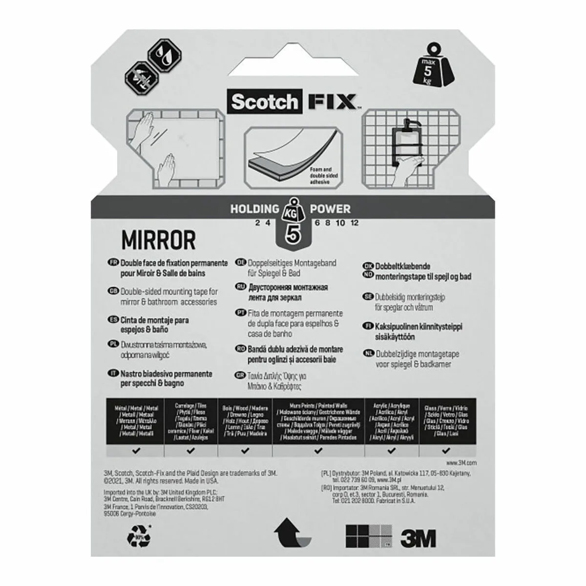La cinta de doble cara Scotch es una solución adhesiva diseñada especialmente para montaje y fijación de objetos con alta precisión y resistencia, destacándose por su color transparente que permite una instalación limpia y discreta. Con unas dimensiones de 19 mm de ancho y 5 metros de longitud, este producto ofrece una amplia superficie adhesiva para cubrir distintas necesidades de unión en el hogar o el trabajo. Su diseño específico para montaje de espejos garantiza una sujeción segura, capaz de soportar un peso máximo de 5 kg, lo que la hace ideal para fijar espejos u otros elementos decorativos sin la necesidad de taladros o clavos. El modelo 4496w-1950-p de Scotch se caracteriza por su adhesivo fuerte y duradero que mantiene la unión estable incluso en superficies lisas y en condiciones variables, aportando una alternativa confiable y práctica frente a otros métodos de fijación. Esta cinta de doble cara representa una solución funcional para trabajos de bricolaje o profesionales, combinando facilidad de uso, eficacia y acabado discreto en cualquier aplicación que requiera una adhesión firme sin comprometer la estética. En definitiva, es una cinta adhesiva de alta calidad que cumple con los estándares esperados para montaje y fijación ligera en superficies delicadas o tradicionales.
