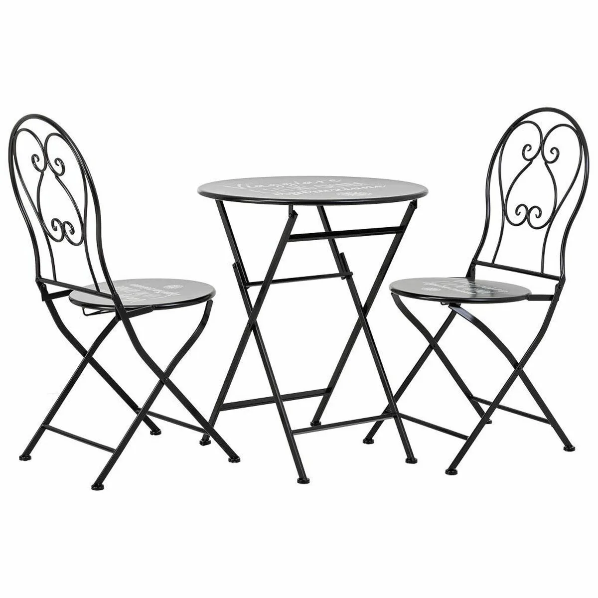 - Conjunto de 3 piezas: incluye una mesa cuadrada de acero negro y 2 sillas plegables a juego