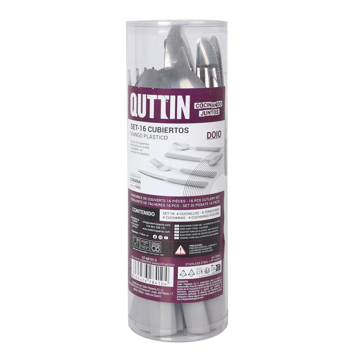 CUBERTERÍA QUTTIN DOIO PLÁSTICO 16 PIEZAS 17 PIEZAS (6 UNIDADES)