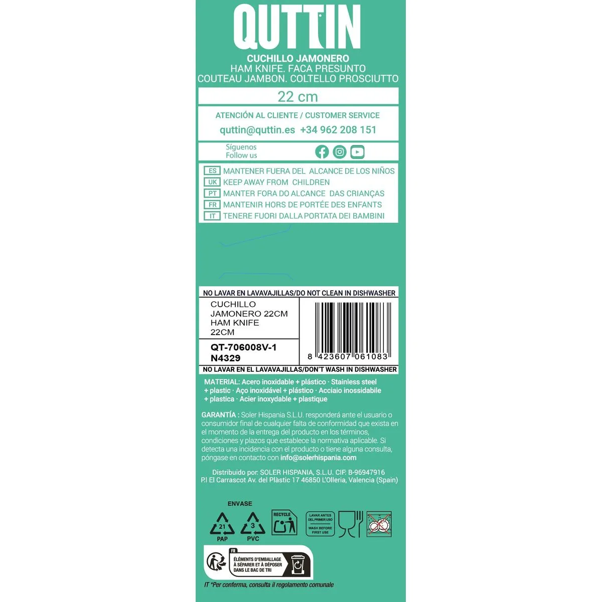 CUCHILLO JAMONERO QUTTIN BLACK NEGRO PLATEADO 22 CM (36 UNIDADES)… Enviado a toda España y a Madrid, Barcelona, Valencia, Sevilla, Zaragoza, Málaga, Murcia, Palma de Mallorca, Las Palmas y Bilbao …