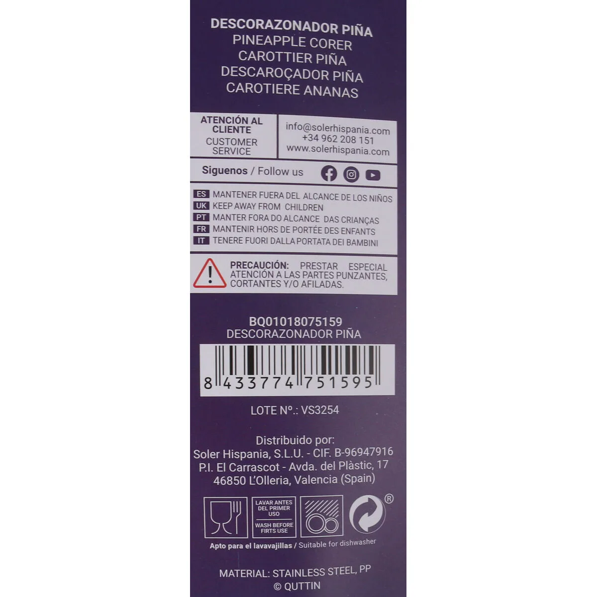 DESCORAZONADOR QUTTIN PI¥A… Enviado a toda España y a Madrid, Barcelona, Valencia, Sevilla, Zaragoza, Málaga, Murcia, Palma de Mallorca, Las Palmas y Bilbao …