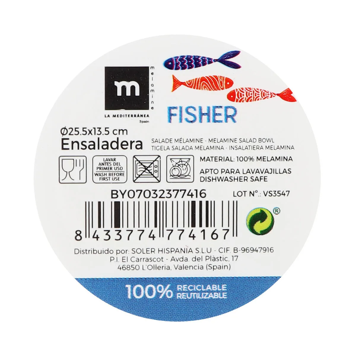 ENSALADERA LA MEDITERRÁNEA FISHER 25,5 X 13,5 CM (8 UNIDADES)... Enviado a toda España y a Madrid, Barcelona, Valencia, Sevilla, Zaragoza, Málaga, Murcia, Palma de Mallorca, Las Palmas y Bilbao ...