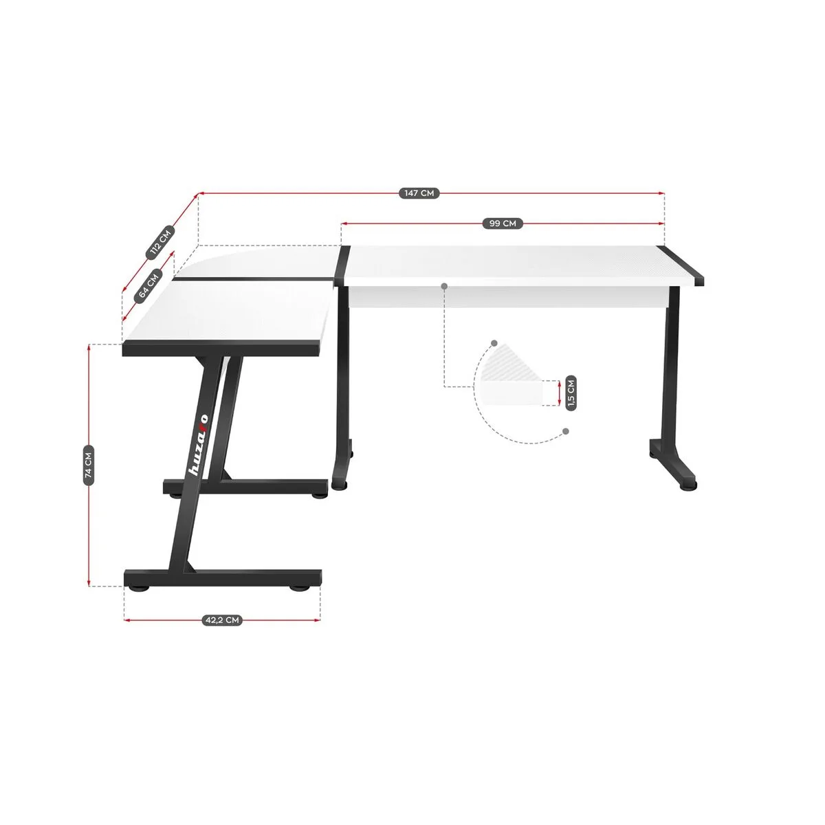 13 valoraciones en ESCRITORIO HUZARO HZ-HERO 6.0 BLANCO ACERO FIBRA DE CARBONO 178 X 4 X 112 CM