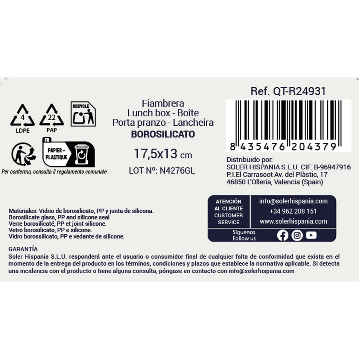 - Incluye: Tapa