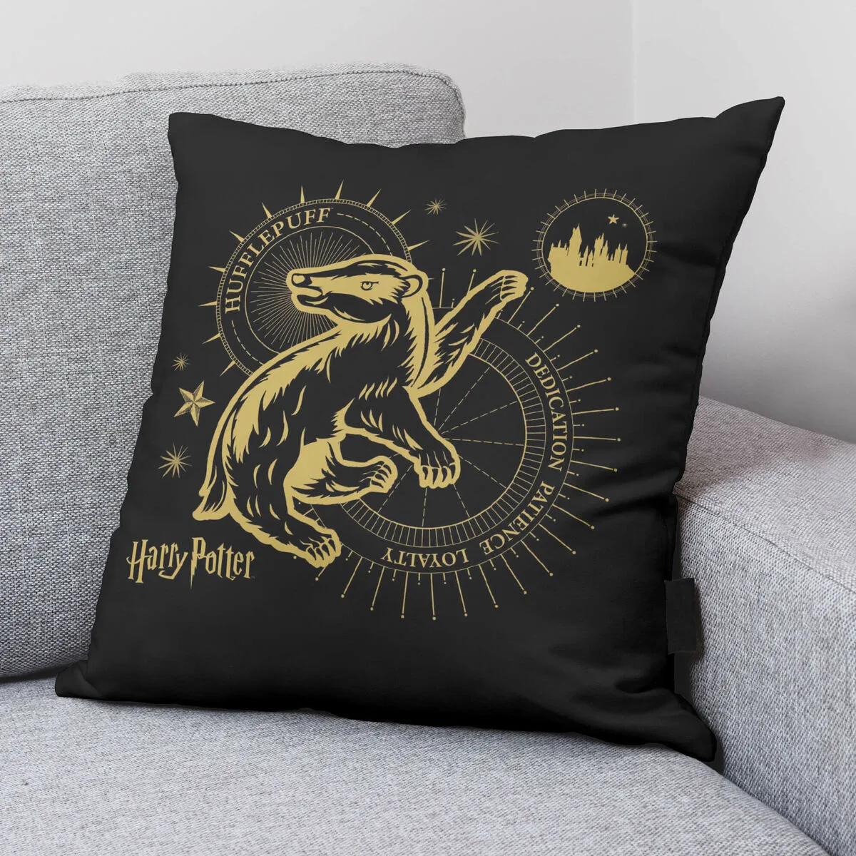 FUNDA DE COJÍN HARRY POTTER HUFFLEPUFF NEGRO MULTICOLOR 50 X 50 CM