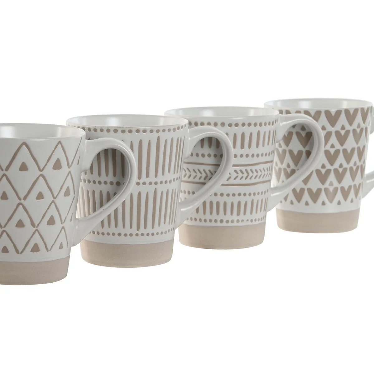 JUEGO DE 4 TAZAS MUG HOME ESPRIT BLANCO BEIGE GRES 360 ML 9 X 7 X 10,6 CM