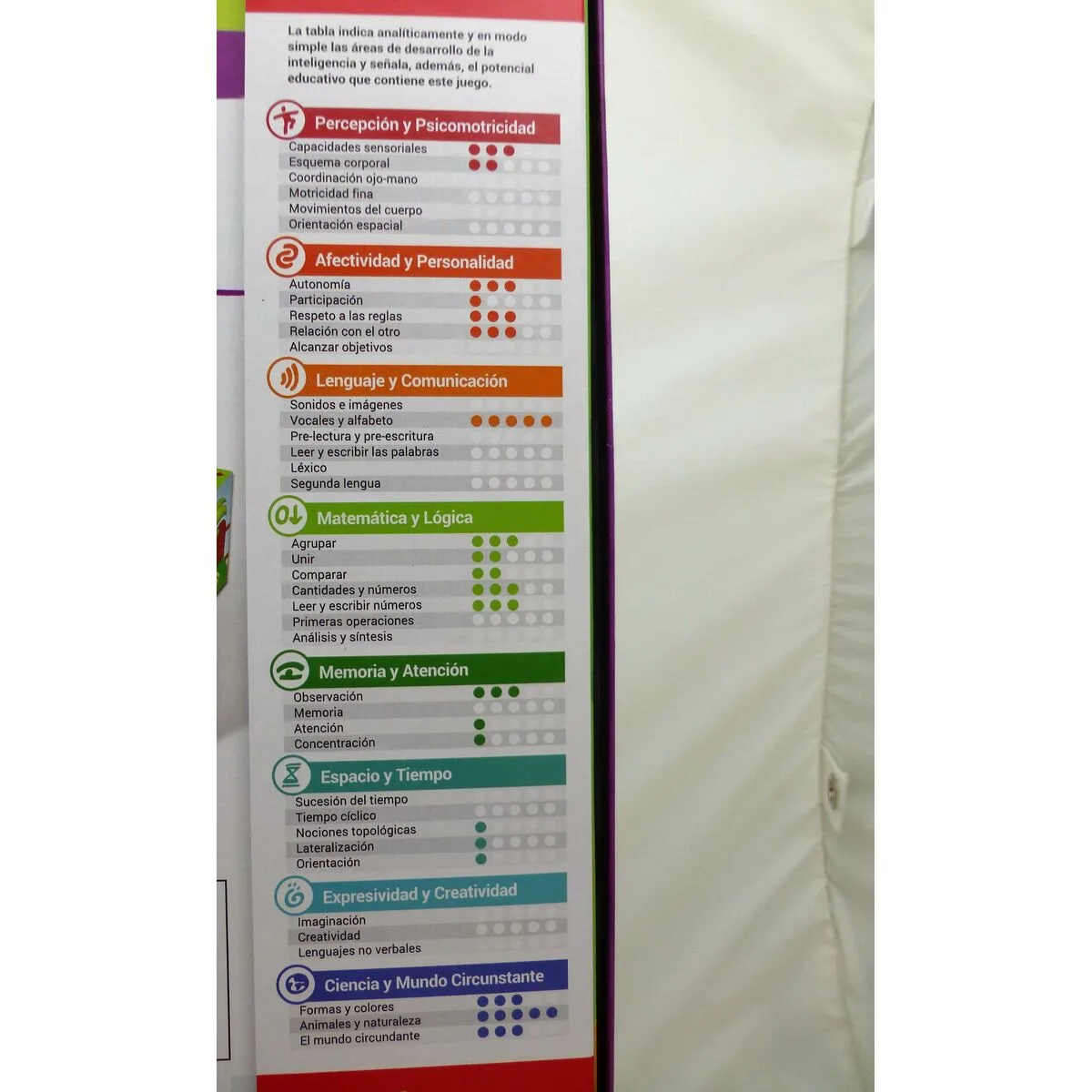 - Valores: ejercita la lógica y la memoria y fomenta el aprendizaje
