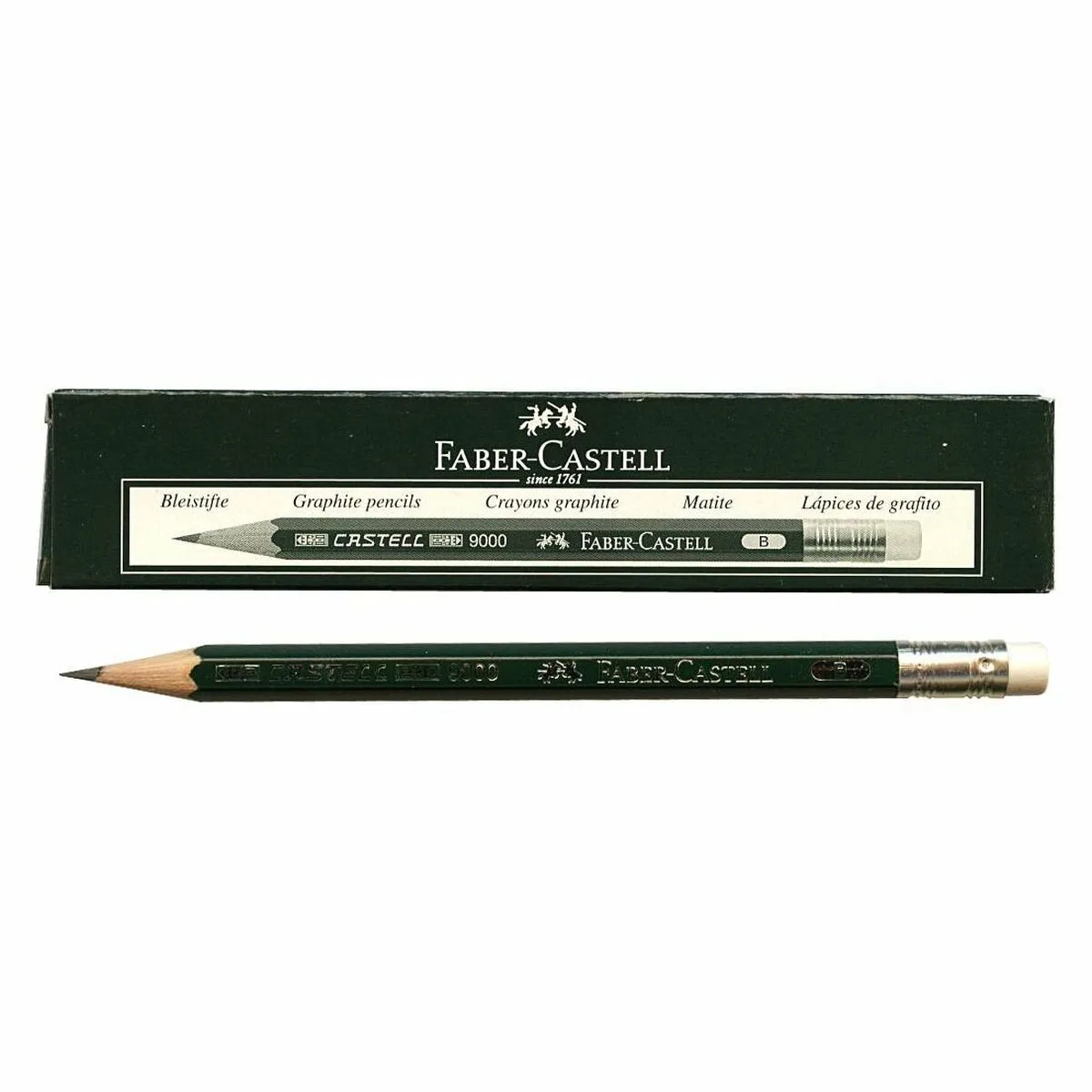 ¡Vuelve a la oficina sin olvidarte de ningún detalle! ¡Compra Lápiz con Goma de Borrar Faber-Castell 9000 B Hexagonal B (3 Unidades) y se la envidia de tus compañeros!
