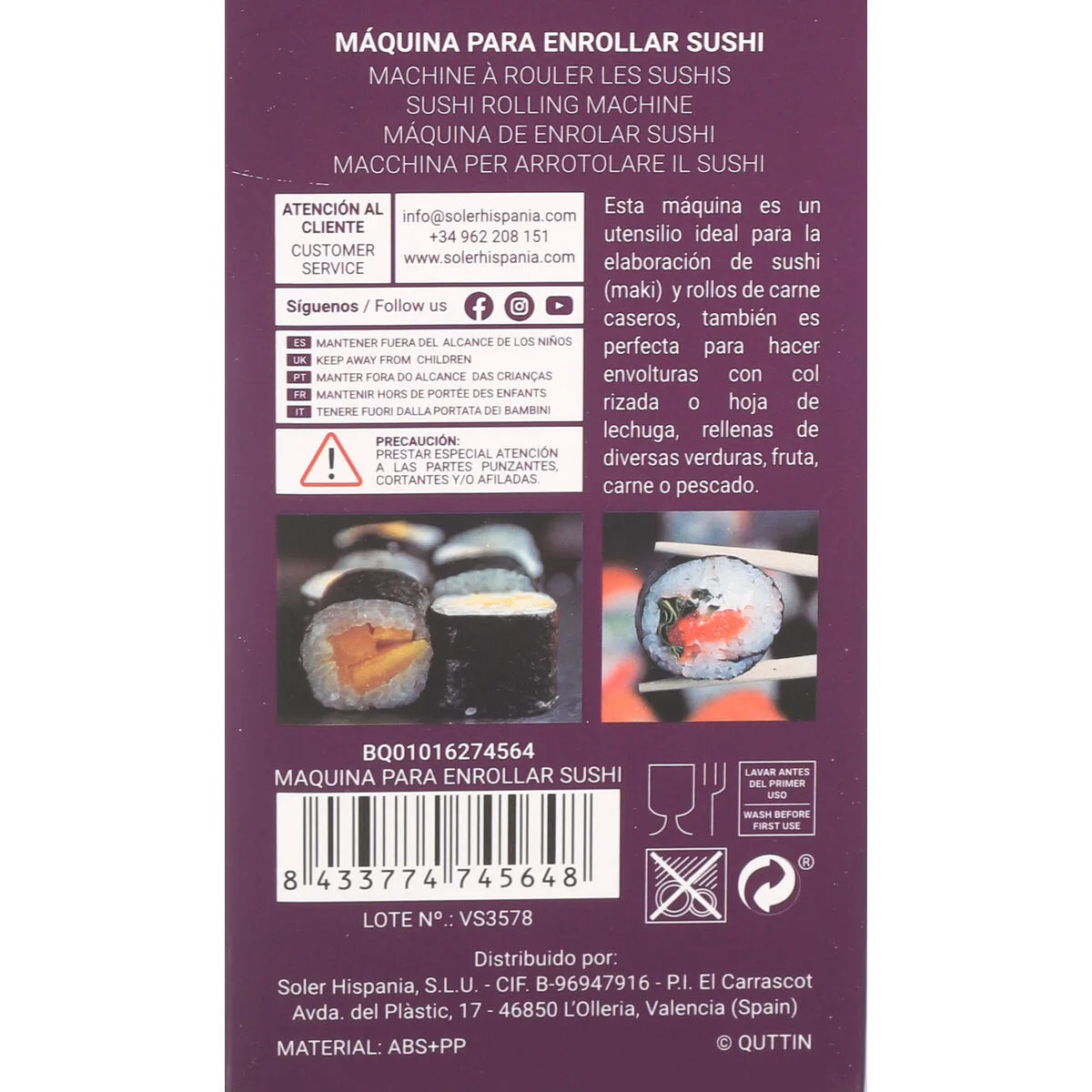 8 valoraciones en MÁQUINA DE SUSHI QUTTIN 22,5 X 8 X 5 CM (18 UNIDADES)