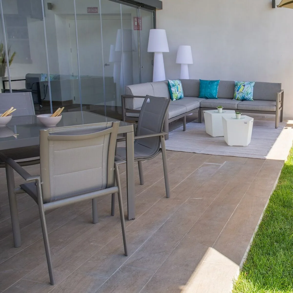 18 valoraciones en MESA DE COMEDOR STELLA 90 X 90 X 75 CM GRIS ALUMINIO