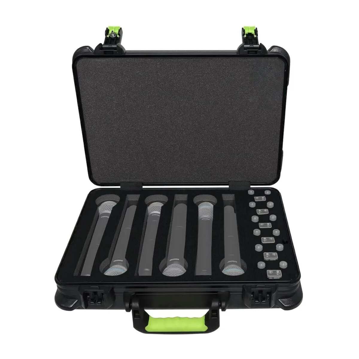 Gator Cases SH-MICCASEW06. Tipo de producto: Estuche de transporte, Marca compatible: Shure, Color del producto: Negro. Ancho: 457 mm, Altura: 330 mm, Profundidad: 140 mm. Ancho del paquete: 469 mm, Profundidad del paquete: 365 mm, Altura del paquete: 145 mm