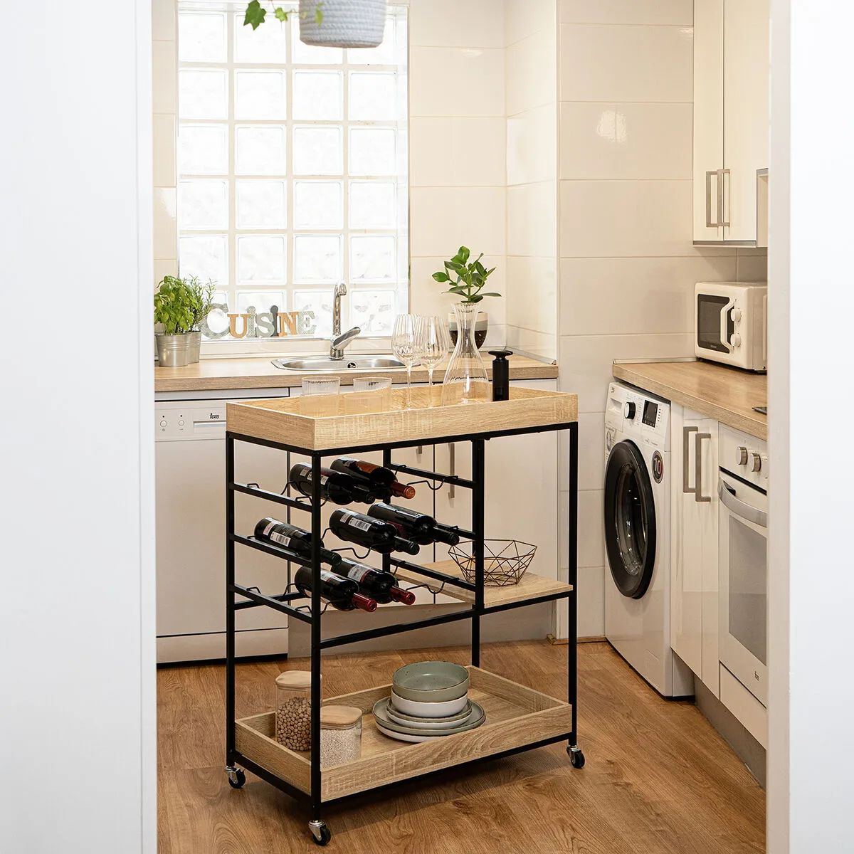 16 valoraciones en MUEBLE CAMARERA VINTHERA MOA BOTELLERO NEGRO METAL 75 X 40 X 91,5 CM