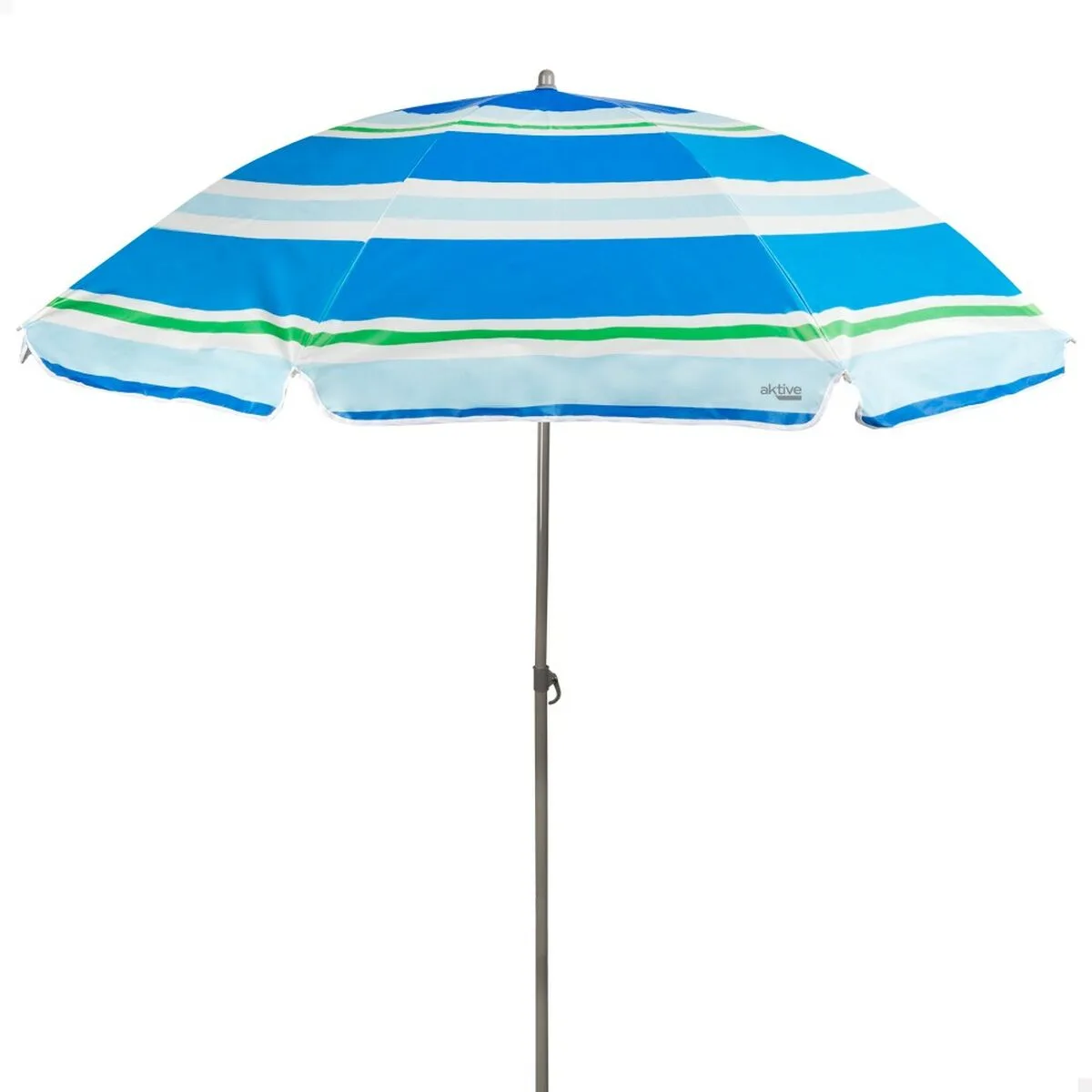 Protege tu piel del sol con esta sombrilla tipo paraguas de 150 cm Aktive, ideal para disfrutar al aire libre en la playa, la montaña o cualquier espacio al aire libre. Su cobertura con protección UV50 y su revestimiento plateado garantizan una protección óptima contra los rayos solares. Además, está fabricada con tejido de poliéster y 8 varillas de fibra de vidrio para mayor resistencia frente a vientos fuertes. Gracias a su diseño ligero y plegable tipo paraguas es muy fácil de transportar, ¡perfecta para cualquier escapada al aire libre!