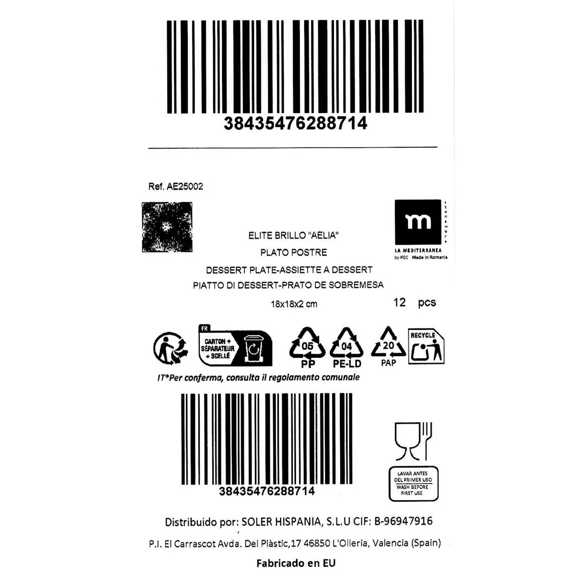 14 valoraciones en PLATO DE POSTRE LA MEDITERRÁNEA AELIA 18 X 18 X 2 CM (12 UNIDADES)
