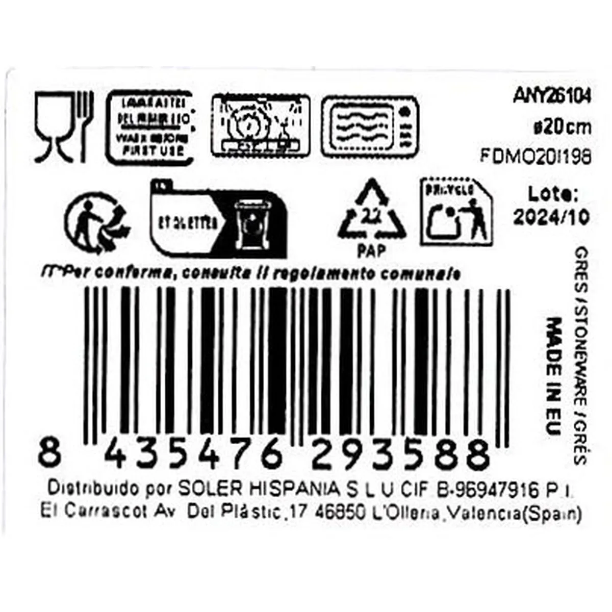 - Diámetro aprox.: Ø 20 cm