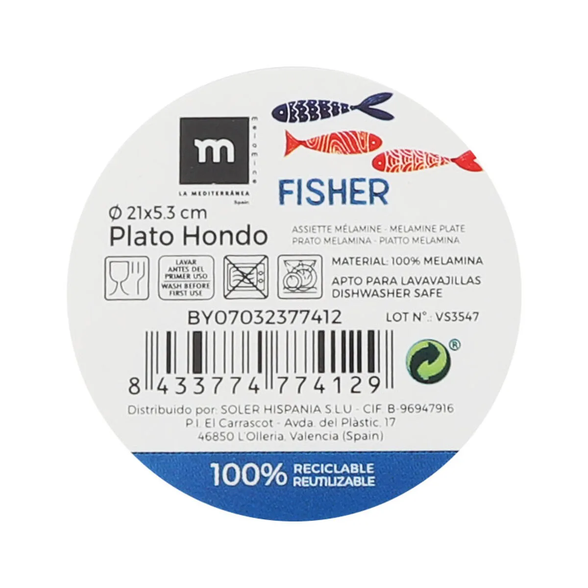 PLATO HONDO LA MEDITERRÁNEA PEIXE Ø 21 CM (12 UNIDADES)... Enviado a toda España y a Madrid, Barcelona, Valencia, Sevilla, Zaragoza, Málaga, Murcia, Palma de Mallorca, Las Palmas y Bilbao ...