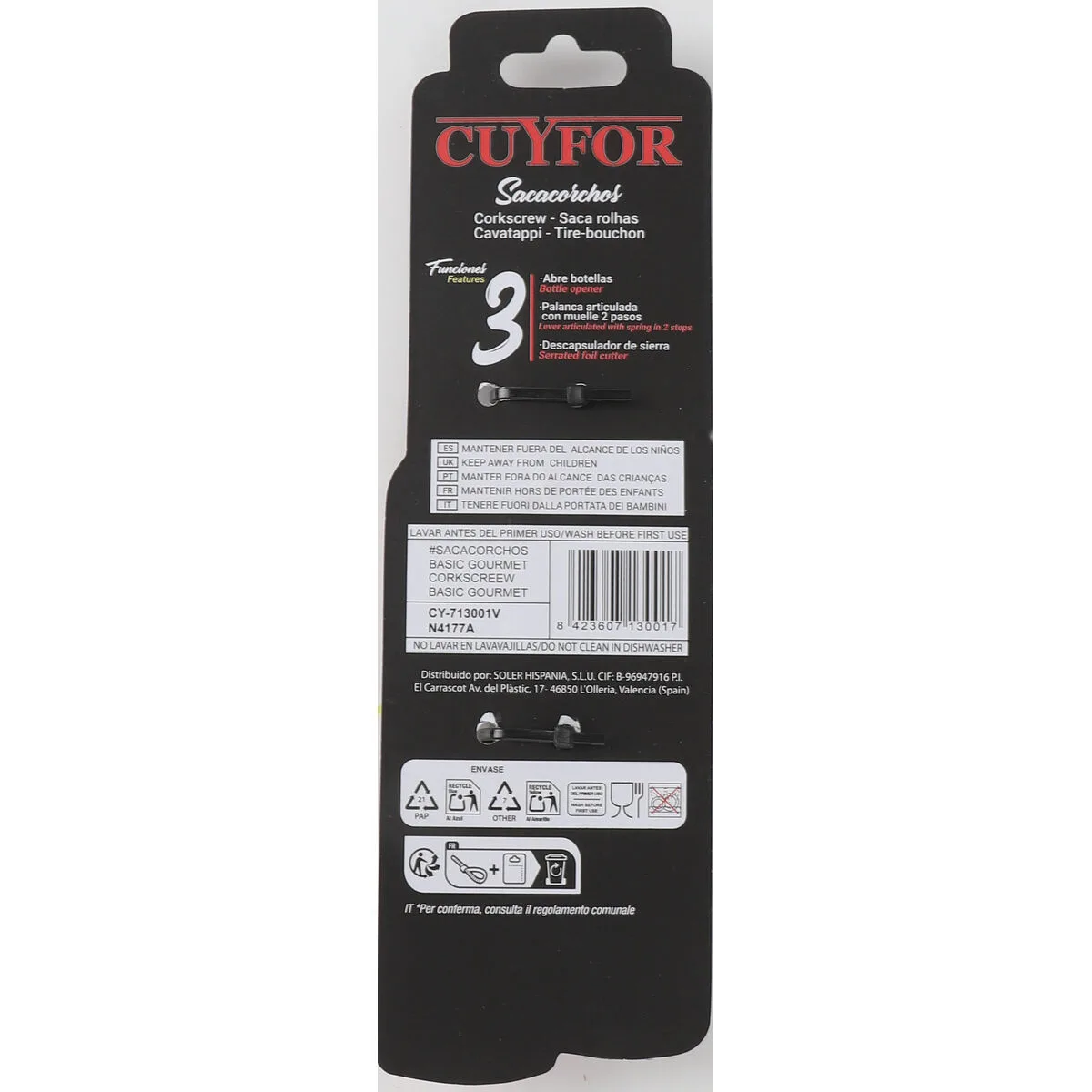 Si te gusta cuidar cada detalle de tu hogar y estar a la última en productos que te harán la vida más facil, compra Sacacorchos con Cortaprecintos y Abrebotellas Cuyfor 8423607130017 12,5 x 2,5 cm (24 Unidades) (12,5 x 2,5 cm) al mejor precio.