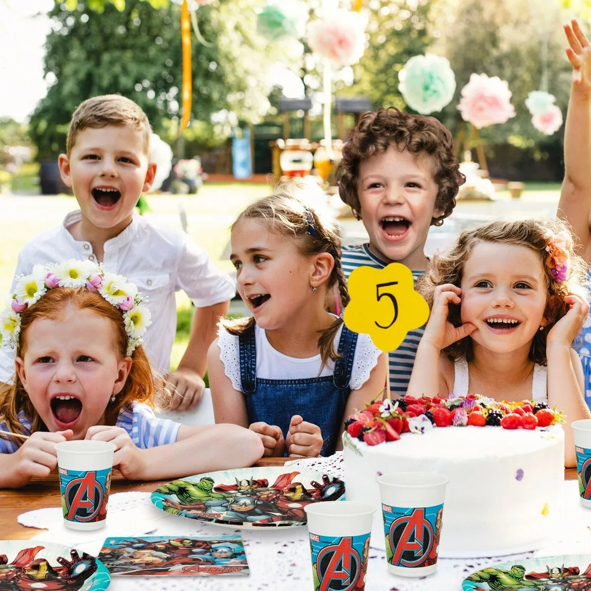 - Vajilla infantil de licencia oficial Avengers para 8 personas