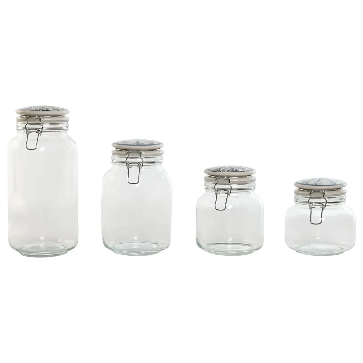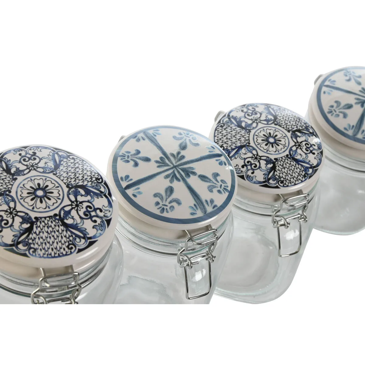 SET DE 4 BOTES HOME ESPRIT AZUL BLANCO METAL SILICONA CRISTAL GRES 800 ML 1 L 1,5 L 2,2 L 4 PIEZAS