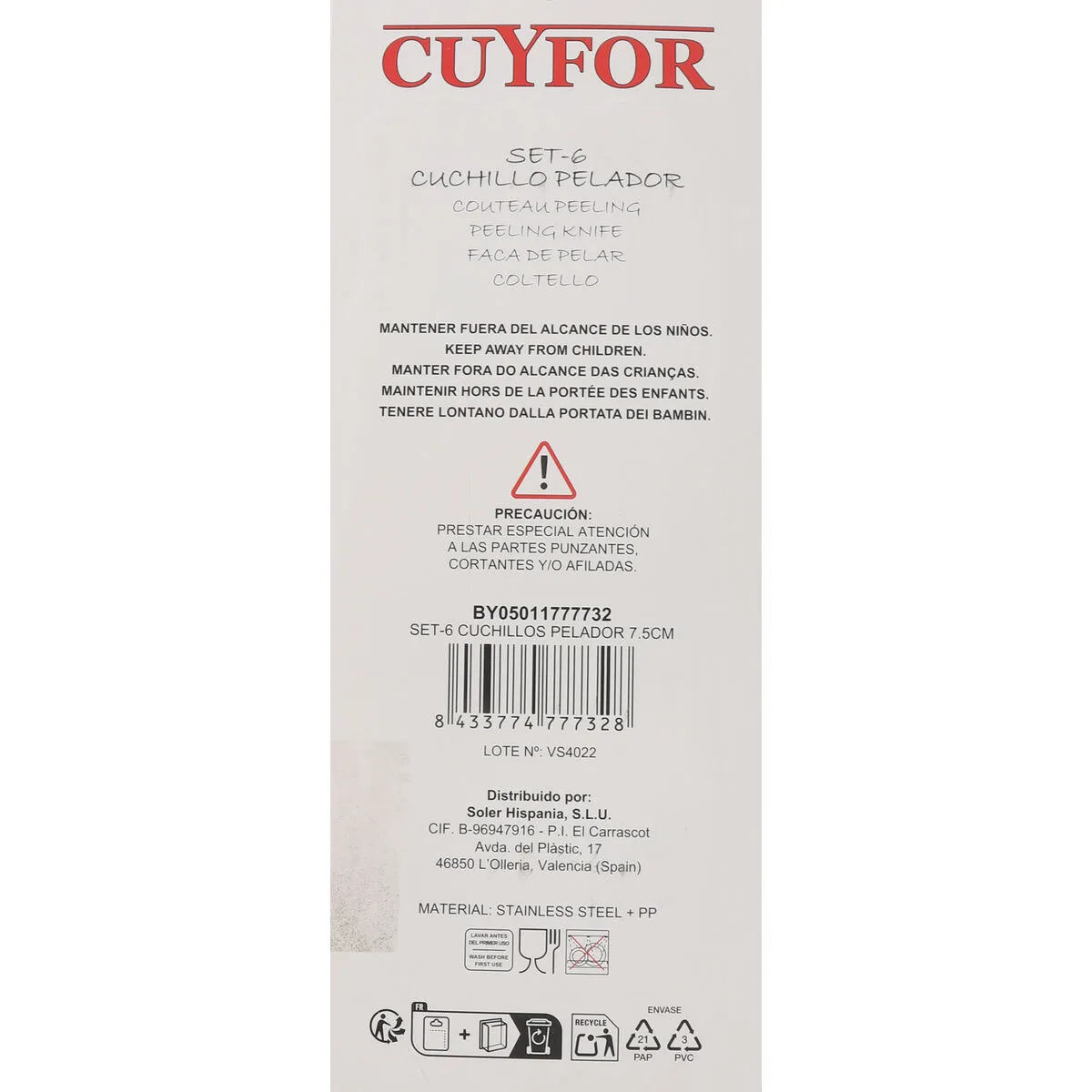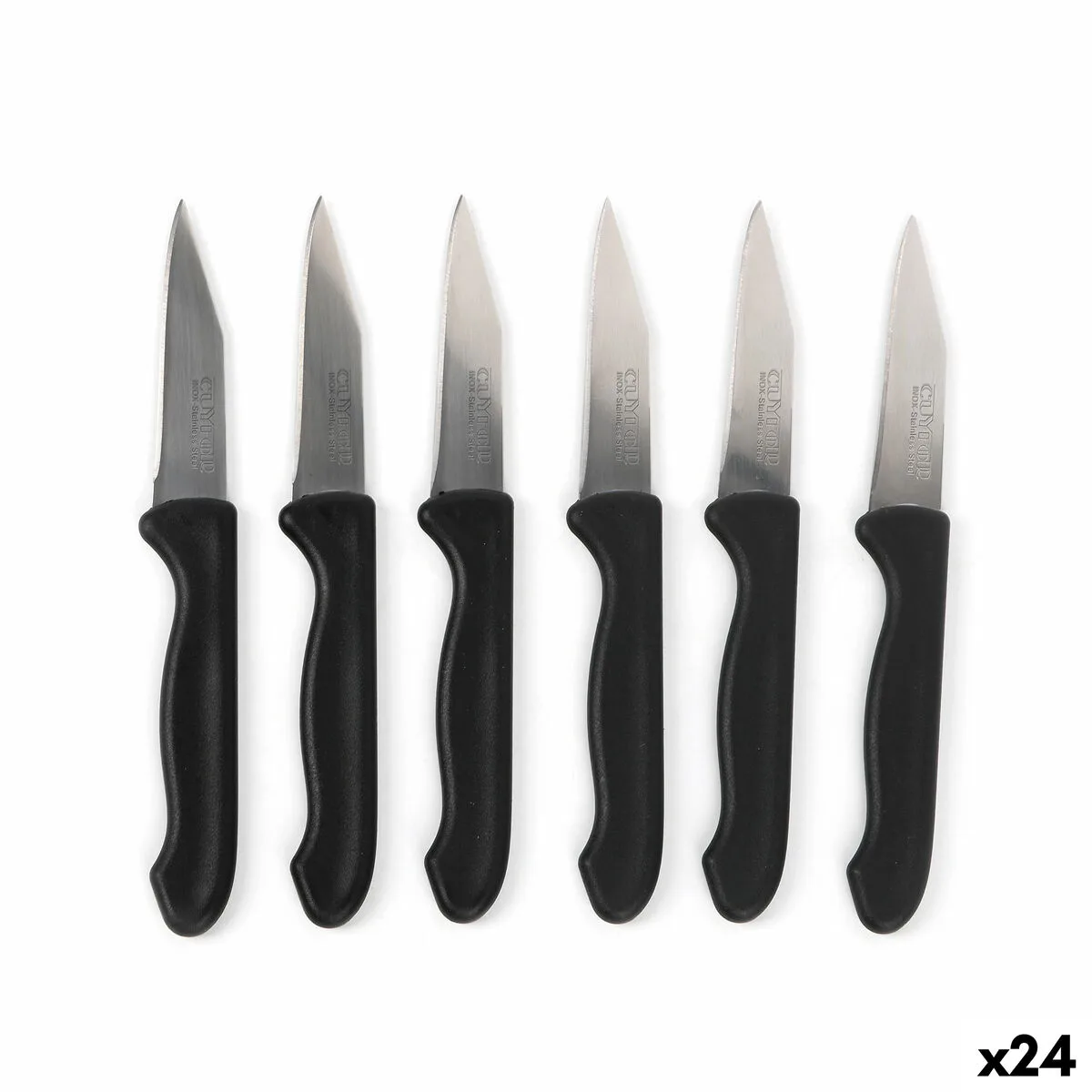 14 valoraciones en SET DE CUCHILLOS PELADORES CUYFOR NEGRO PLATEADO ACERO INOXIDABLE 7,5 CM 6 PIEZAS (24 UNIDADES)