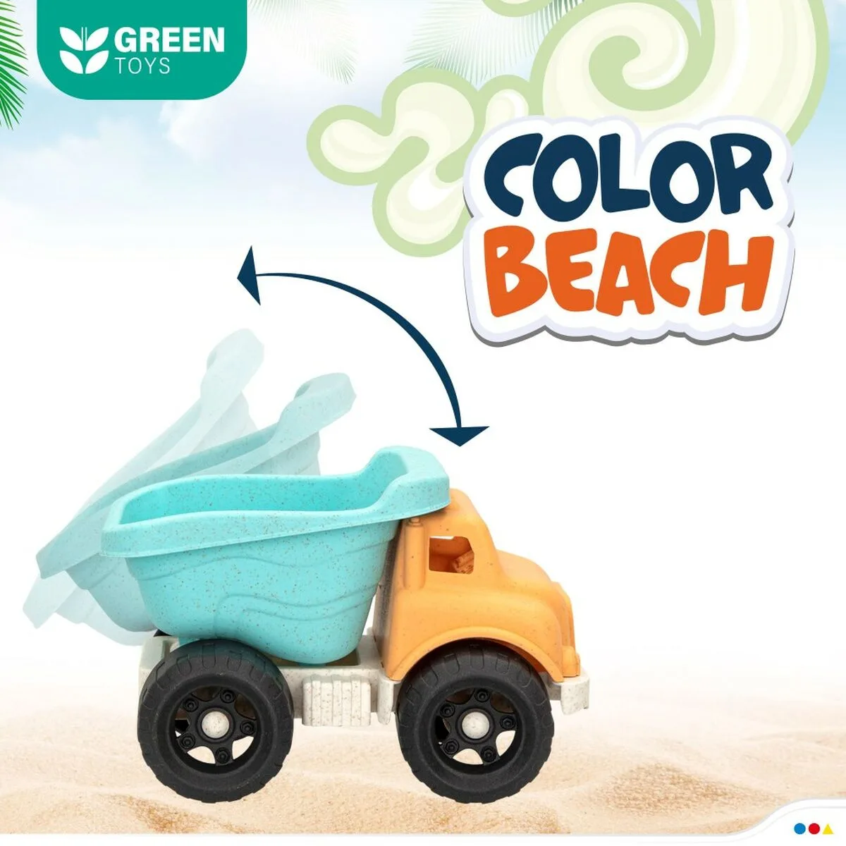 - ¡Hoy toca día de playa! ¡Lleva contigo esta carretilla Color Beach Green Toys con accesorios y pásalo bomba creando figuras sobre la arena!