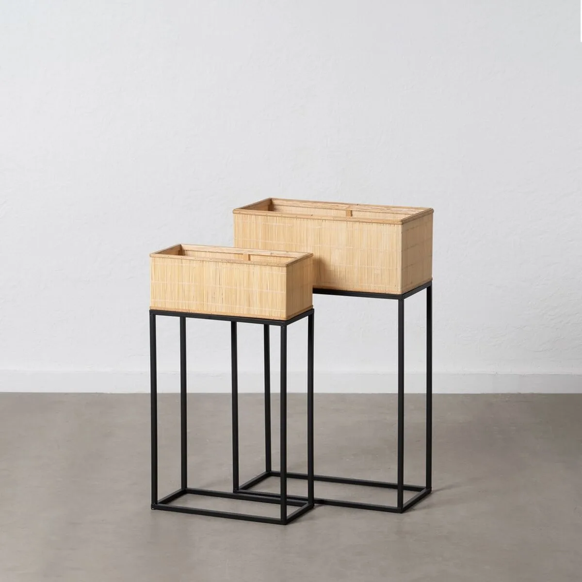 15 valoraciones en SET DE MACETEROS NEGRO HIERRO 58 X 25 X 76 CM (2 UNIDADES)