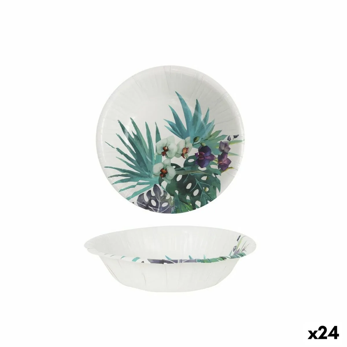 SET DE PLATOS ALGON DESECHABLES CARTÓN TROPICAL 3 PIEZAS 28 CM (24 UNIDADES)... Enviado a toda España y a Madrid, Barcelona, Valencia, Sevilla, Zaragoza, Málaga, Murcia, Palma de Mallorca, Las Palmas y Bilbao ...