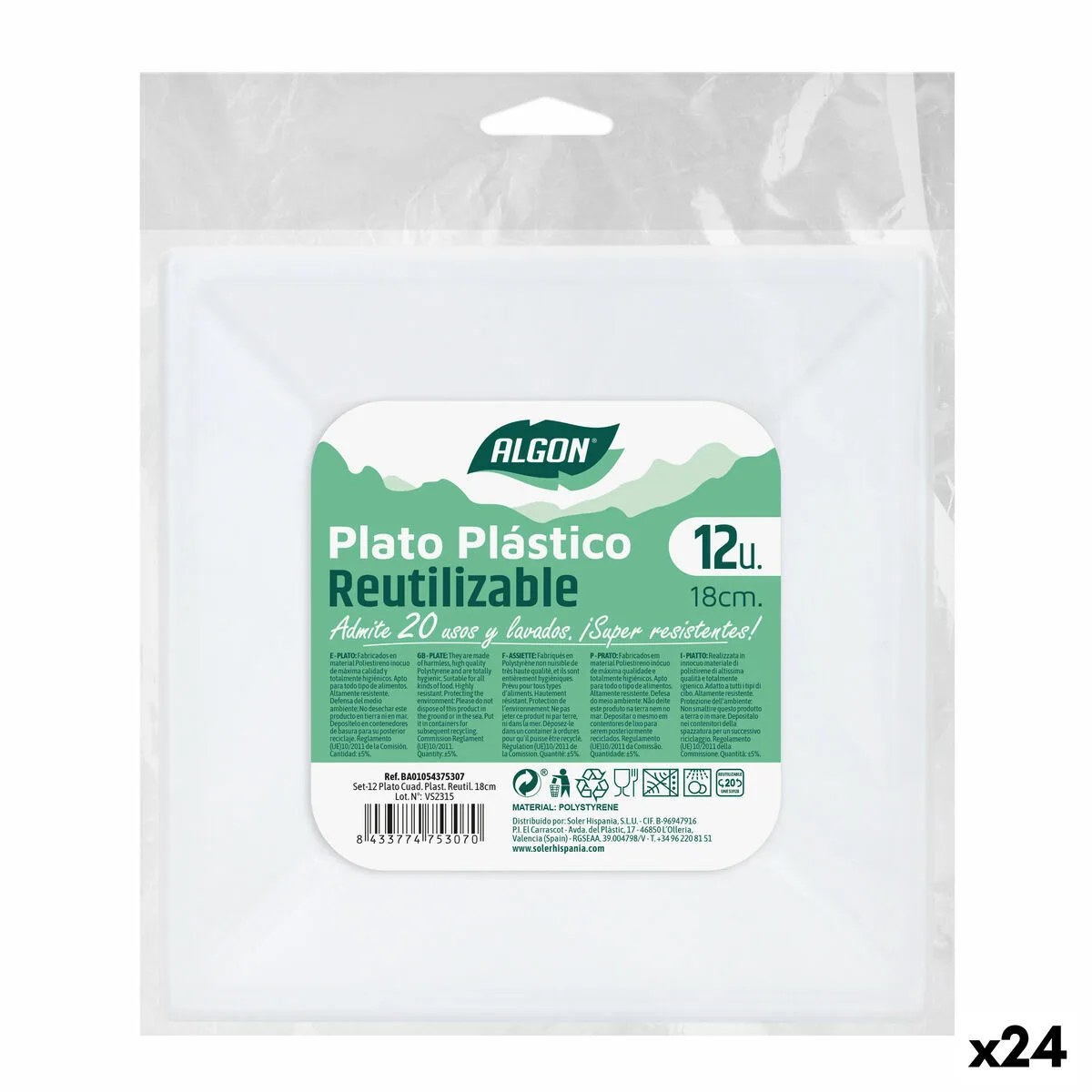 Si te gusta cuidar cada detalle de tu hogar y estar a la última en productos que te harán la vida más facil, compra Set de platos reutilizables Algon Cuadrado Blanco Plástico 18 x 18 x 4 cm (24 Unidades) al mejor precio.