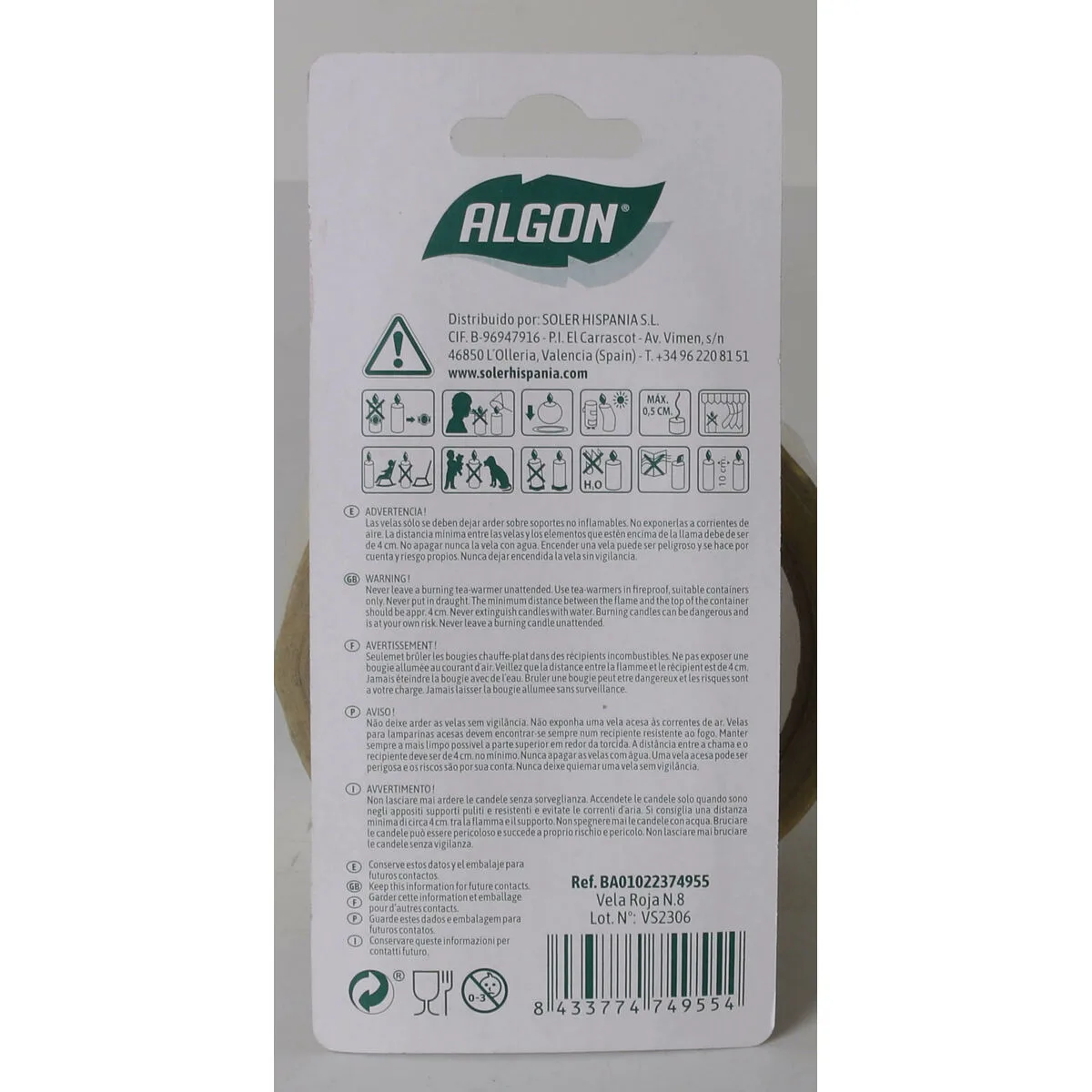 SET DE VELAS ALGON (36 UNIDADES)… Enviado a toda España y a Madrid, Barcelona, Valencia, Sevilla, Zaragoza, Málaga, Murcia, Palma de Mallorca, Las Palmas y Bilbao …