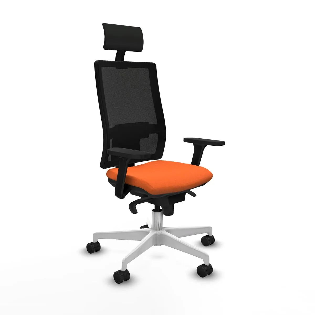 La silla de oficina Jorquera 2D036N1 de Piqueras y Crespo es una solución ergonómica diseñada para proporcionar comodidad y funcionalidad durante largas sesiones de trabajo, adaptándose perfectamente tanto a espacios de oficina como de home office. Esta silla de oficina presenta un diseño moderno en color naranja con un respaldo fijo de malla transpirable 100 % PP que favorece la ventilación, evitando la acumulación de calor y permitiendo un uso confortable durante hasta 8 horas continuas. Su asiento de espuma inyectada de 50 mm con densidad 50 Kg/m³, reforzado internamente por un PVC con estructura de panal, ofrece una firmeza equilibrada para mantener una postura estable y cómoda en periodos prolongados. Está equipada con un cabecero fijo que brinda soporte adicional al cuello, ayudando a mantener una postura correcta y reduciendo la fatiga cervical. La silla incorpora brazos 2D que permiten ajuste tanto en altura como en ángulo, para adaptarse a las necesidades individuales de cada usuario. Además, cuenta con apoyo lumbar ajustable, que proporciona soporte ergonómico a la zona lumbar, ayudando a prevenir molestias y favoreciendo una postura saludable. El respaldo y asiento cuentan con un mecanismo sincro que permite regular la inclinación y fijarla en 5 posiciones, mejorando la versatilidad y confort durante el uso. La altura de asiento es regulable entre 48 y 61 cm, mientras que la altura total de la silla varía entre 121 y 129 cm, permitiendo una adecuación personalizada según la estatura del usuario. La estructura de la base, fabricada en nailon negro de 5 radios con 680 mm de diámetro, junto con las robustas ruedas de nailon de 65 mm con eje interno de acero, aseguran estabilidad y un desplazamiento suave y silencioso sobre superficies lisas. Soporta un peso máximo de 120 kg, adaptándose a diferentes tipos de usuarios con seguridad. Certificada bajo normativa UNE-EN-1335 y con componentes conforme a BIFMA, esta silla garantiza calidad y durabilidad dentro de su categoría. Su acabado principal combina mallla y tela en un acabado funcional y estético, coordinando estilo contemporáneo y ergonomía avanzada. En conjunto, la silla Jorquera ofrece un equilibrio óptimo entre ajuste personalizado, soporte ergonómico y materiales transpirables para mejorar la experiencia de trabajo diario en entornos profesionales o domésticos.