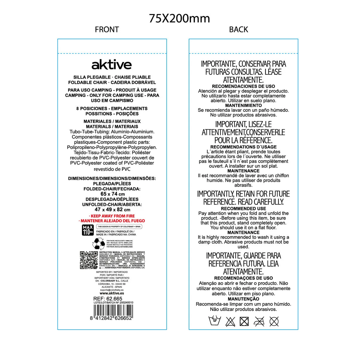30 valoraciones en SILLA PLEGABLE AKTIVE 47 X 49 X 82 CM