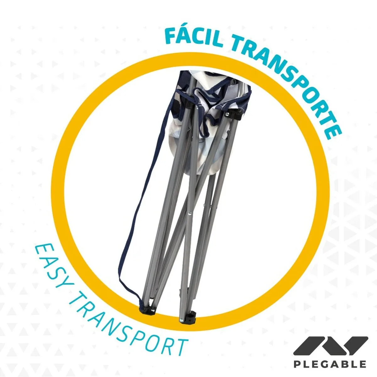 - Materiales: tejido poliéster transpirable y estructura de acero