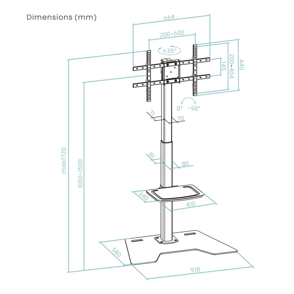 “MINOS” Soporte de Suelo con Regulación de Altura para Pantallas 37″- 70″, Rotación 90°, Negro
