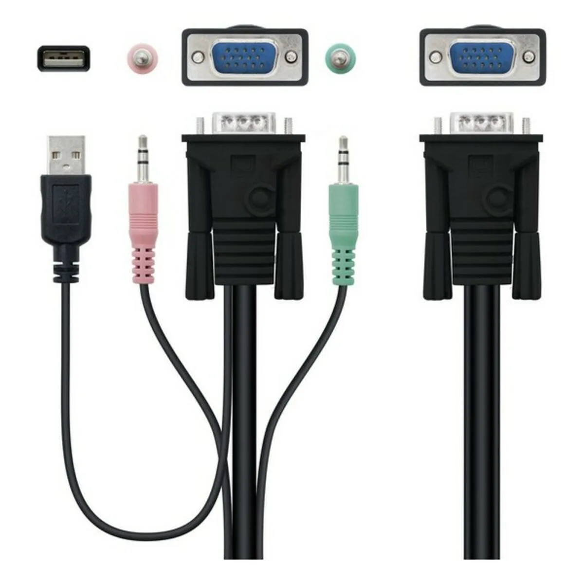 – Cables incluidos: 2xVGA, 2xJack 3.5(auriculares), 2xJack 3.5(micrófono), 2xUSB
