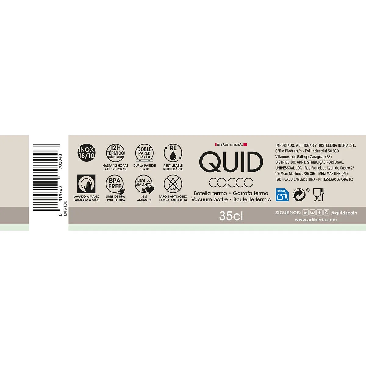 - Aislamiento: el termo de doble pared diseñado con el objetivo de lograr mantener sus bebidas frías o calientes durante varias horas el tapa también es de doble pared añadiendo un asilamiento adicional para aumentar el tiempo de conservación tanto de bebidas frías como calientes