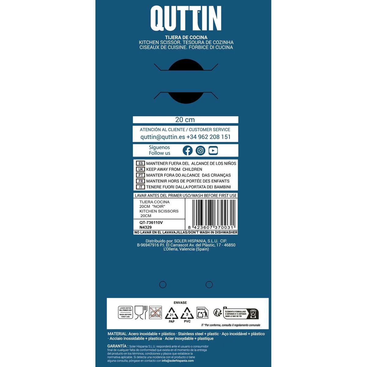 Si te gusta cuidar cada detalle de tu hogar y estar a la última en productos que te harán la vida más facil, compra Tijeras de Cocina Quttin Noir 20 cm 21 x 8 x 1 cm (24 Unidades) al mejor precio.